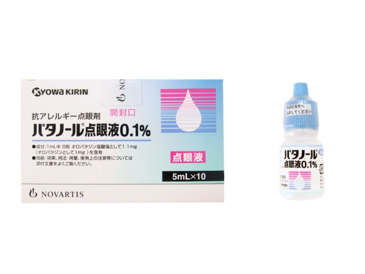 パタノール点眼液0.1%(一般名:オロパタジン塩酸塩)は花粉症などによるアレルギー性結膜炎のかゆみや充血などの症状をやわらげる目薬です。アレルギーの原因となる「ヒスタミン」の働きをおさえることで、つらい目の症状を改善します。